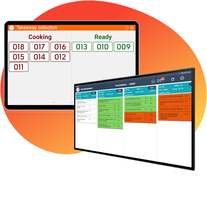 Orders can be sent directly to your kitchen display where Chefs can update the order status, while our collection screen allows customers to watch the progress of their order.